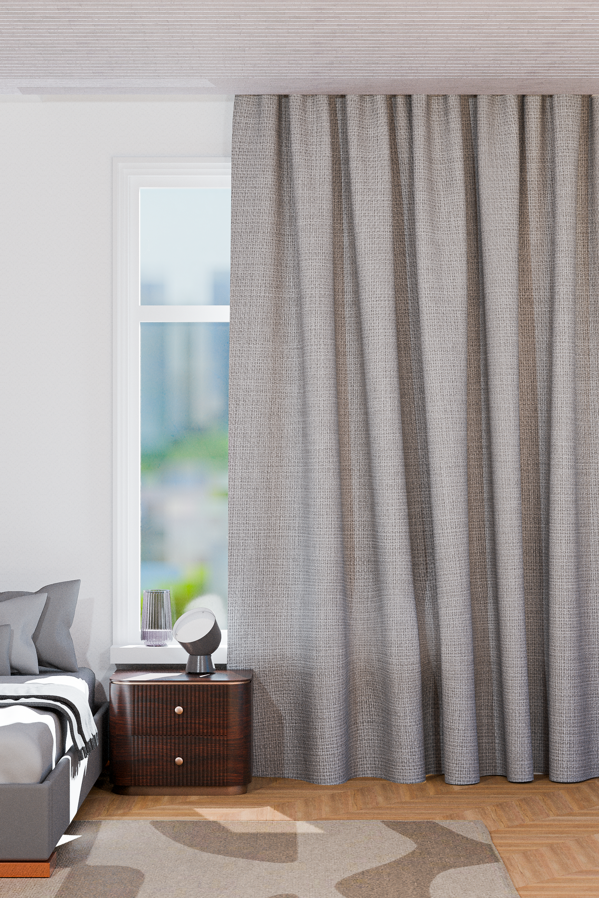The Aura Panels in Grey offer a sophisticated linen solid look that enhances any room's decor. Crafted from 100% polyester, these room-darkening panels help reduce light and noise while providing thermal insulation. The machine-washable fabric ensures easy care, and the grommet header allows for smooth sliding on curtain rods. Perfect for indoor use, these panels come in a pack of two, making them an ideal choice for bedrooms or living rooms.