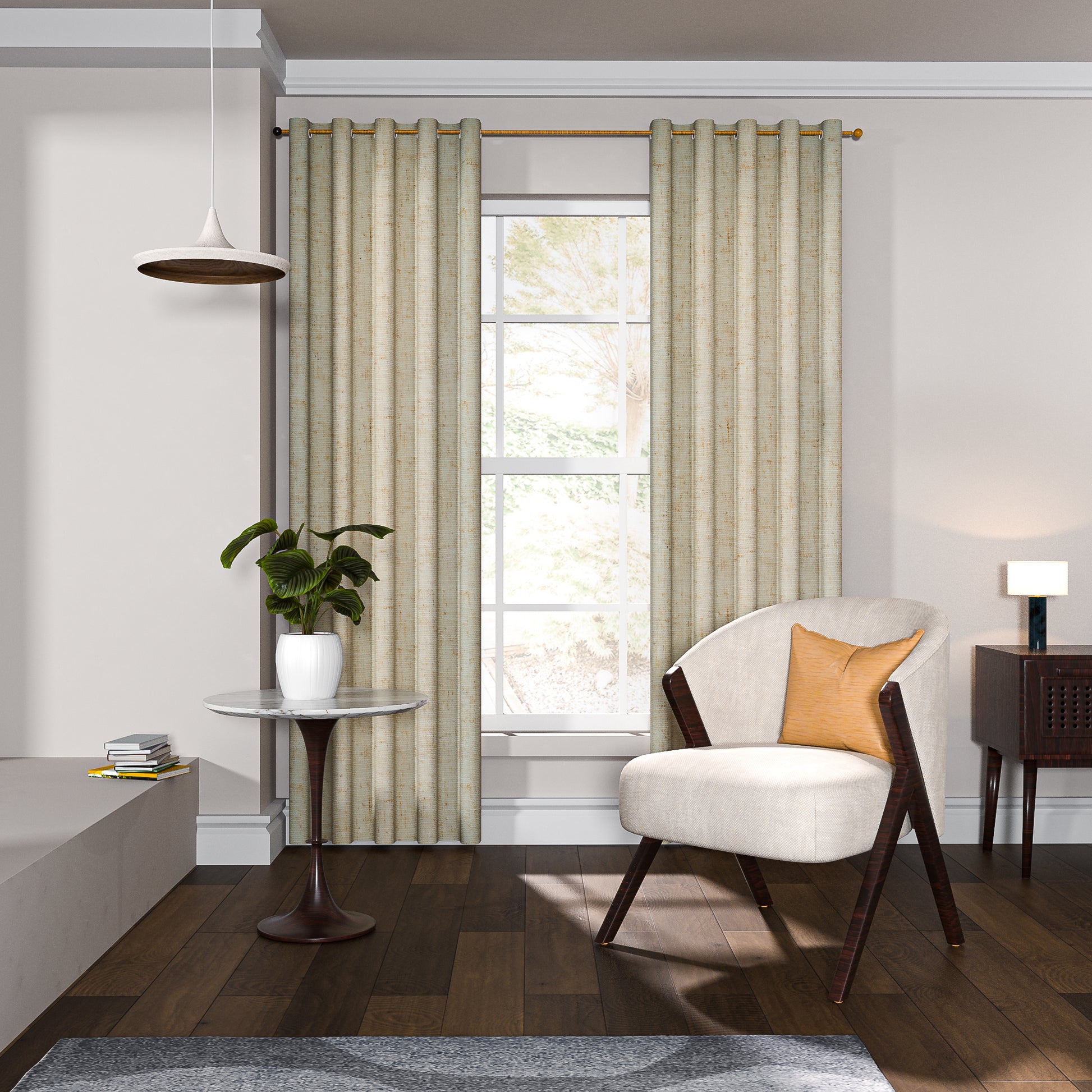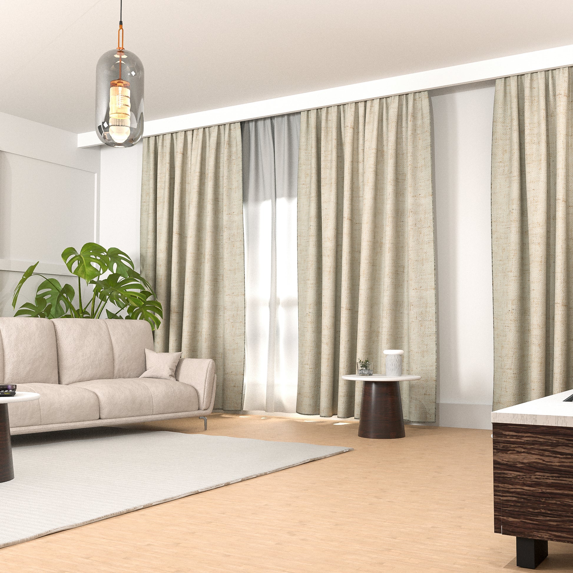 The Essence Panels in Beige bring a refined, natural look to your home with their linen-blended solid design. Unlined and made from 100% polyester, these curtains are lightweight and allow for a gentle diffusion of light, making them perfect for spaces where you want a relaxed yet polished feel. The grommet header ensures easy hanging and smooth sliding, while the machine-washable fabric makes maintenance a breeze.