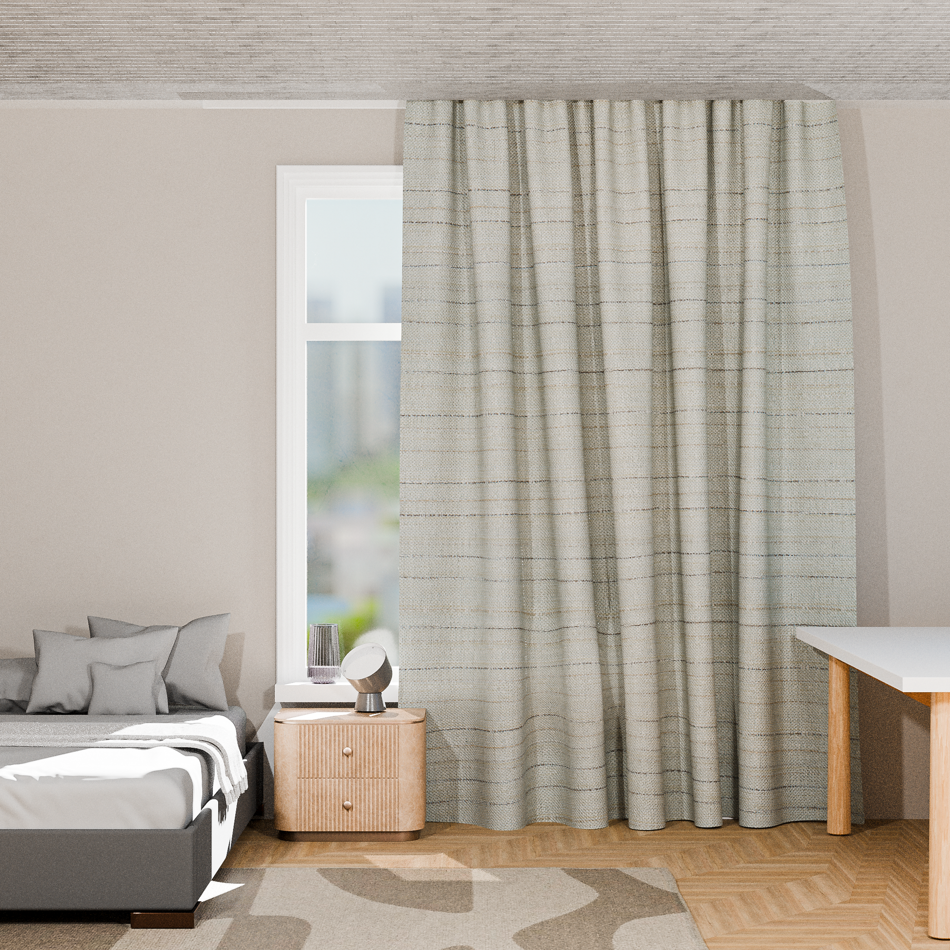 The Horizon Panels in Natural are designed for those who need complete blackout capability. Made from 100% polyester, these curtains feature a full blackout design that blocks out all light, making them perfect for bedrooms, media rooms, or any space where darkness is essential. The grommet header allows for easy installation and smooth operation, while the machine-washable fabric ensures easy care.