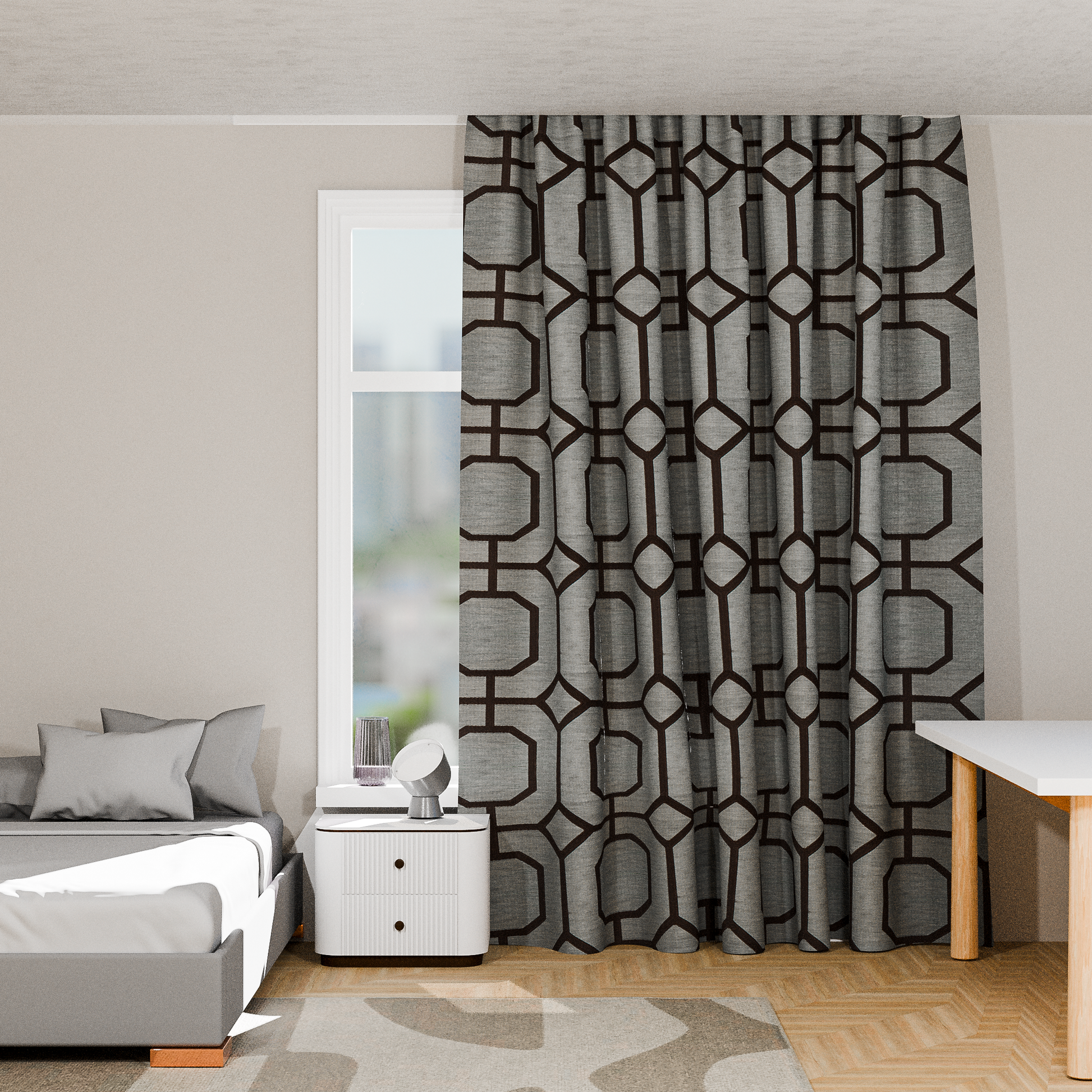 The Metropolis Panels in Grey bring a modern and stylish touch to your space with their printed lined jacquard design. Made from 100% polyester, these curtains offer a lined construction for added insulation and privacy. The grommet header ensures easy hanging and smooth sliding, while the machine-washable fabric makes upkeep simple. These panels are ideal for living rooms, bedrooms, or any space where you want to add a contemporary flair.